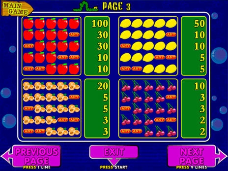 Оплачиваемые комбинации составляются из однотипных изображений в пределах активных линий. Основными знаками на барабанах считаются фрукты разных сортов.