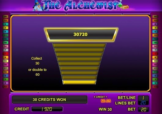 В видео слоте The Alchemist активируются до 20 игровых полос. От количества игровых линий зависит количество способов формирования выплат. Поэтому видео слот «Алхимик» считается гораздо прибыльнее таких автоматов Lucky Bugs, Columbus, Ultra Hot, Missis Gold, Cristal Luck, Double Magic и др.