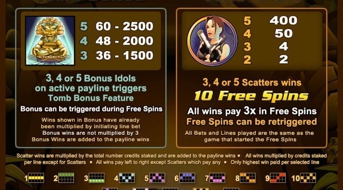 Слот Lara Croft: Tomb Raider радует клиентов бонусной игрой, фри спинами, щедрыми выплатами и высокими множителями.
